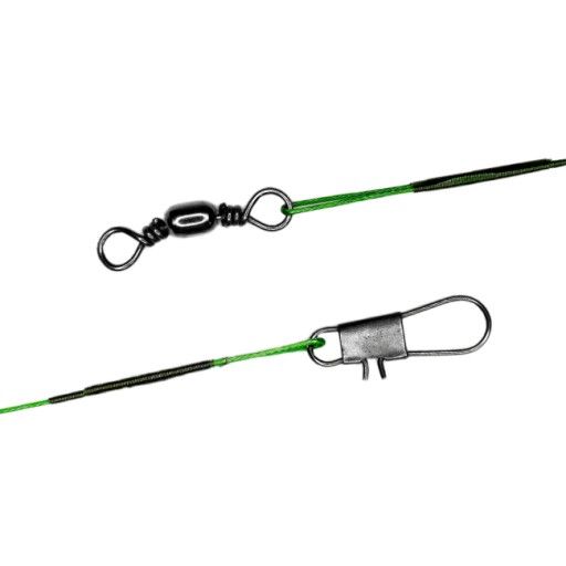 Konstrukcja oparta na 7 stalowych linkach sprawia, że każdy przypon jest wyjątkowo wytrzymały. Dodatkowo, zastosowana specjalna otulina o wysokiej odporności w intensywnym kolorze zielonym zapewnia ochronę przed zniszczeniami mechanicznymi. Kolor ten nie tylko nadaje estetyczny wygląd, ale także zmniejsza widoczność przyponów pod wodą, co może być kluczowe dla skutecznego łowienia.