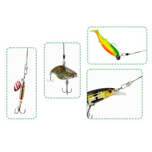 Zestaw przyponów STEEL LINK został zaprojektowany z myślą o pełnej uniwersalności i wszechstronności podczas połowów. Dzięki zastosowaniu krętlika i agrafki, łatwo jest przyłączyć różne akcesoria wędkarskie, co sprawia, że można swobodnie dostosować przypony do preferowanej techniki połowu. Oto kilka przykładów akcesoriów, które można łatwo przyłączyć do tych przyponów: