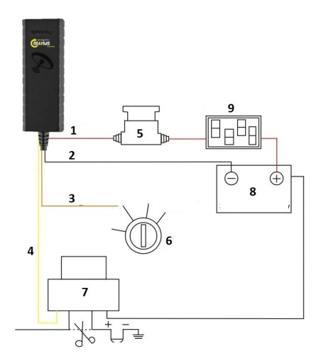 4 - Kabel sterujący przekaźnikiem (włącz / wyłącz zasilanie np: pompy paliwa)