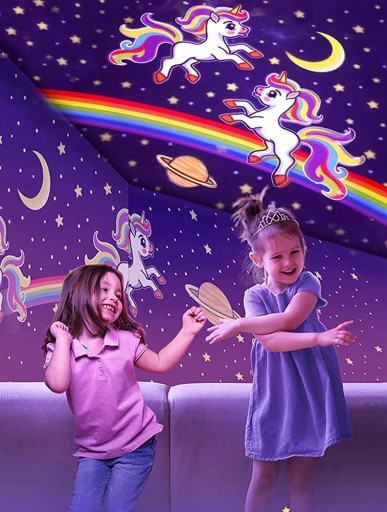 - Pozytywka dla dziewczynki i projektor gwiaździstego nieba dla dzieci oferuje dekorację jednorożca kawaii, romantyczne gwiaździste niebo, piękny morski świat.
