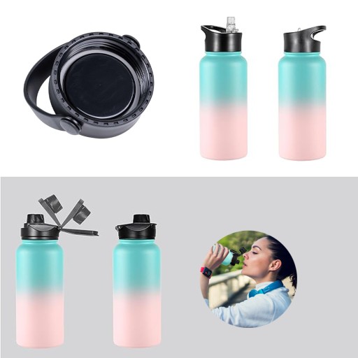 💧WYTRZYMAŁE POKRYWKI - Nasze izolowane próżniowo butelki na wodę są wyposażone w trzy różne, całkowicie szczelne pokrywki ze słomki, które zapewniają doskonałe uszczelnienie. Przenośna pokrywa - wystarczy przekręcić, aby ułatwić podnoszenie; prosta pokrywa - mały okrągły otwór do kontroli wody; Pokrywka ze słomy - łatwa do otwierania i zamykania w górę i w dół. Różne pokrywki można zmieniać na różne okazje i wzbogacać codzienne życie.