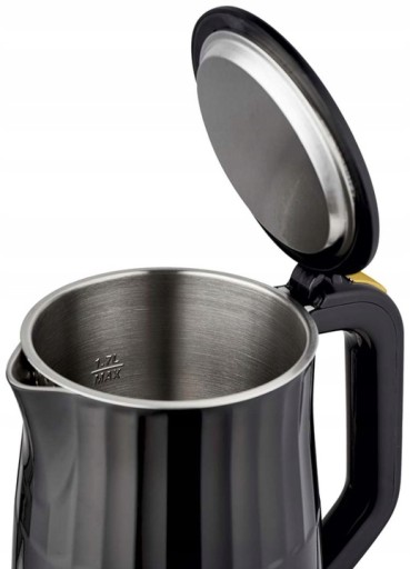 - Podwójne ścianki czajnika izolują wydostawanie się ciepła i zapobiegają nagrzewaniu się zewnętrznej obudowy czajnika