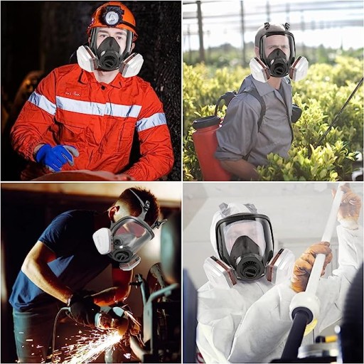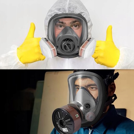 - -Nasza maska pełnotwarzowa tworzy hermetyczne uszczelnienie, chroniąc Cię przed latającymi odłamkami i niebezpiecznymi gazami lub oparami. Krawędź respiratora jest wykonana z podwójnego silikonu, który może ściśle przylegać do twarzy i pełnić rolę szczelnej ochrony.