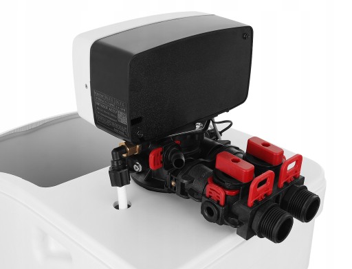 - automatyczna, elektroniczna głowica czasowo-objętościowa z by-passem, który umożliwia szybkie odłączenie zmiękczacza od instalacji hydraulicznej