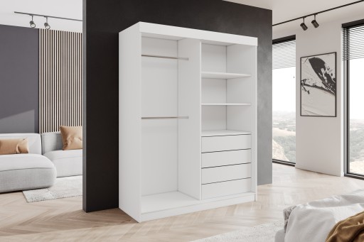 - Szuflady są wykonane z tej samej białej płyty laminowanej, co szafa, co zapewnia spójny wygląd. Mają solidną konstrukcję i są łatwe do otwierania i zamykania. Dodanie szuflad do wnętrza szafy nie tylko zwiększa jej funkcjonalność, ale także umożliwia lepszą organizację i łatwiejsze odnalezienie potrzebnych rzeczy.