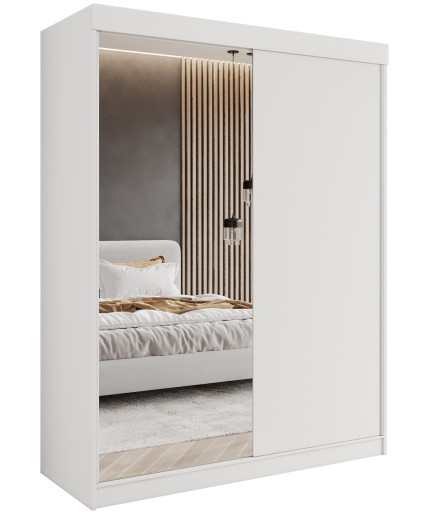 БЕЛЫЙ 2-ДВЕРНЫЙ ШКАФ РАЗДВИЖНЫЙ 140 x 205 СМ 1 ЗЕРКАЛЬНЫЙ ШКАФ ПРОИЗВОДИТЕЛЬ