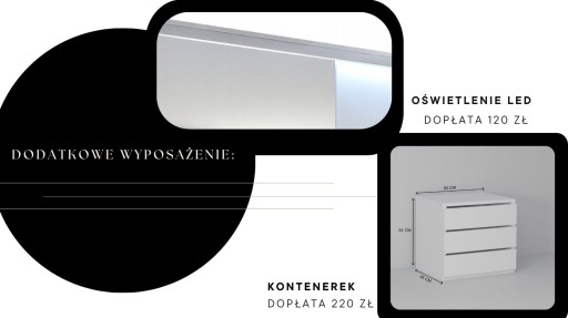 - Istnieje również możliwość wyposażenia szafy w szuflady, kontenerek lub oświetlenie Led.