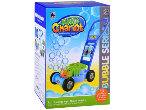 Kosiarka do puszczania baniek mydlanych zapewnia wiele godzin niesamowitej zabawy. Zabawka wykonana z tworzywa sztucznego w przyjemnych kolorach. Stabilność zapewnia szeroka podstawa. Aby rozpocząć zabawę wystarczy wlać płyn do zbiorniczka i uruchomić kosiarkę czerwonym przyciskiem. Cudowne mydlane bąbelki polecą przed siebie.