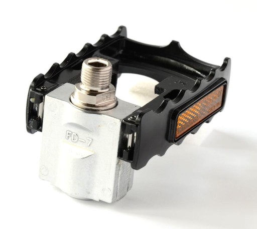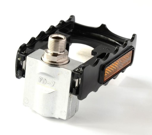 Jednoczęściowe pedały składane. Dzięki dużemu i wygodnemu przyciskowi, szybkim ruchem możemy złożyć pedały. Dzięki oryginalnemu mechanizmowi i lekkiej aluminiowej budowie są bardzo trwałe i praktycznie niezniszczalne. Idealne do składanych rowerów.