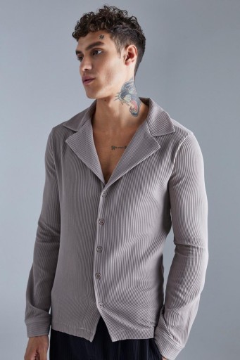 СЕРАЯ КЛАССИЧЕСКАЯ РУБАШКА С ДЛИННЫМ РУКАВОМ ПЛИССИРОВАННАЯ ПРЯМАЯ BOOHOOMAN L