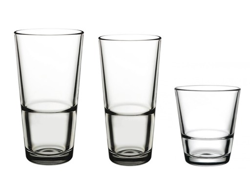 Szklanki Grande Longdrink posiadają grube ścianki, oraz wytłoczenie, dzięki któremu można sztaplować w stosy.
