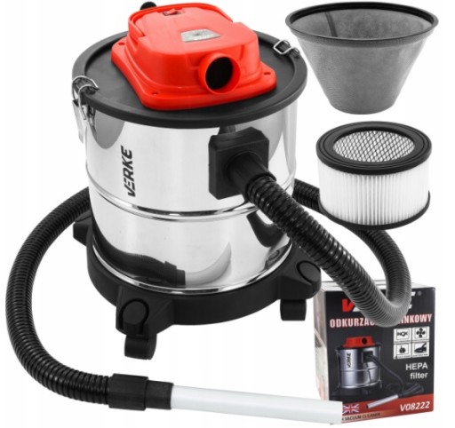 ODKURZACZ KOMINKOWY - POPIOŁU, PYŁU, GRUZU - 1200W 20L VERKE Z FILTREM HEPA