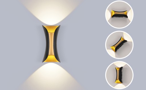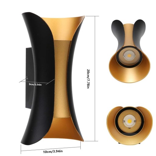 💡Klosz lampy ściennej składa się z odlewanego ciśnieniowo aluminium, pomalowanej na czarno powierzchni i złotego wnętrza. Jest odporny na rdzę, nie żółknie i jest trwały.