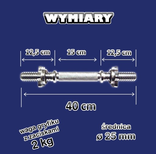 Gryfy wykonane są bardzo starannie i solidnie z chromowanej stali. Część chwytna posiada ryflowanie poprawiające komfort wykonywania ćwiczeń. Część przeznaczona na założenie obciążeń jest gwintowana.