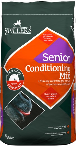 SPILLERS Senior Conditioning Mix to wysoce skuteczna pasza kondycyjna, która spełnia potrzeby żywieniowe starszego konia. W wielu przypadkach u starszych koni niezbędna jest zwiększona kaloryczność paszy, dzięki której możliwe jest utrzymanie właściwej wagi, masy i kondycji konia.