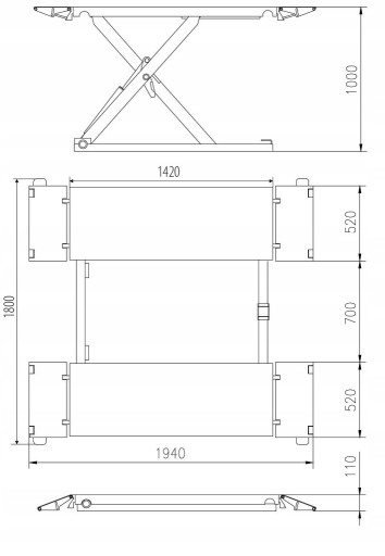 Podnośnik nożycowy NORTEC PN3500D, podprogowy, niskiego podnoszenia, 3,5T