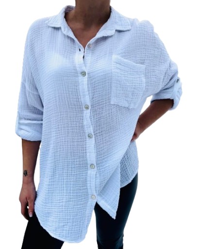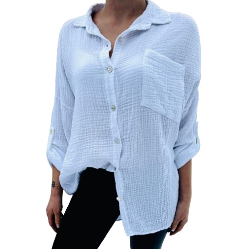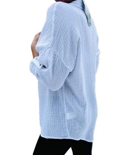 Koszula z długim rękawem, zapinana po całości na guziki. Idealna propozycja na nadchodzący sezon, wykonana z przewiewnego materiału dzięki czemu zapewnia komfort noszenia. Idealna także na kostium kąpielowy .Prosty/oversizowy fason sprawdzi się w wielu stylizacjach. Dostępna w kilku wariantach kolorystycznych!