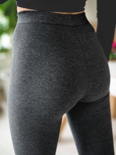 Idealnie dopasowują się do ciała, guma w pasie o szerokości 5 cm podnosi komfort użytkowania. Legginsy mają prążkowany, matowy materiał.