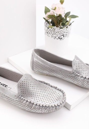 SZARE MOKASYNY DAMSKIE PÓŁBUTY AŻUROWE WSUWANE PŁASKIE WKŁ. EKOSKÓRA
