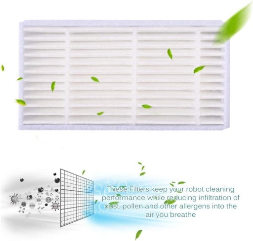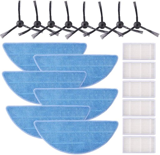 Opakowanie zawiera: szczotki boczne 4L. Szczotki boczne 4R. 6 szt. Filtr HEPA 6 x ściereczki z mikrofibry.