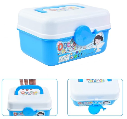 - walizkę z uchwytem w kolorze niebieskim do przechowywania narzędzi lekarskich