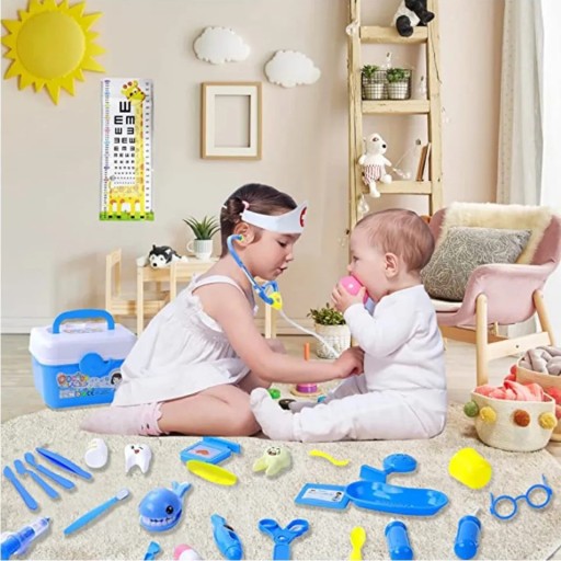 Dziecko dzięki zabawie zestawem małego doktora pozna sprzęt i narzędzia wykorzystywane w gabinetach lekarskich czy dentystycznych. Bawiąc się z rodzeństwem, przyjaciółmi czy rodzicami będzie przeprowadzać badania lekarskie. Twoja pociecha będzie leczyć swoje misie i maskotki. Taka zabawa pozytywnie wpłynie na przebieg wizyty u prawdziwego lekarza. Zestaw pomoże w przełamaniu strachu przed wizytą u lekarza czy dentysty czyniąc ją mniej stresującą. Pozwoli też na poznanie ludzkiego ciała.