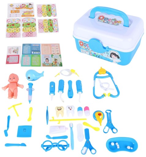 Bogate wyposażenie zestawu zapewni fantastyczną zabawę dziecku na wiele godzin. Różnorodność dodatkowych akcesoriów uatrakcyjnia czas spędzony na zabawie. Stetoskop, termometr, strzykawka, lalka, łózko szpitalne, liczne narzędzia dentystyczne dają nieograniczone możliwości zabawy. Dodatkowo praktyczne rozwiązanie z walizką pozwala na zabieranie zestawu ze sobą oraz na utrzymanie porządku po skończonej zabawie.