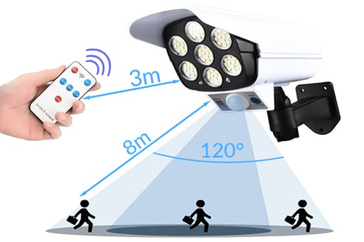 СОЛНЕЧНАЯ МОДЕЛЬ КАМЕРА МИГАЮЩАЯ СВЕТОДИОДНАЯ ЛАМПА ДАТЧИК ДВИЖЕНИЯ СУМЕРКИ ПУЛЬТ ДУ