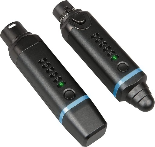 Częstotliwość pracy 2,4 GHz Czas oczekiwania <3,5 ms Zasięg transmisji Do 100 stóp w linii wzroku Zakres dynamiczny 110dB THD + hałas < 0,2% @1 kHz Żywotność baterii 5 godzin Wymiary Nadajnik 107mm(dł)×25mm(szer)x25mm(wys)