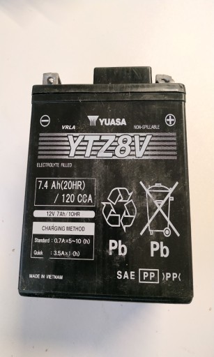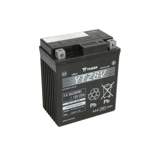 Akumulator AGM/Rozruchowy YUASA 12V 7,4Ah 120A P+ Bezobsługowy 113x70x130mm Uruchomiony YTZ8V pasuje do: HONDA CB, CBR, CMX, NSS, SH; KAWASAKI KFX, KL, KLX, KLZ; SUZUKI DR, GZ 125-1000 1985-2022