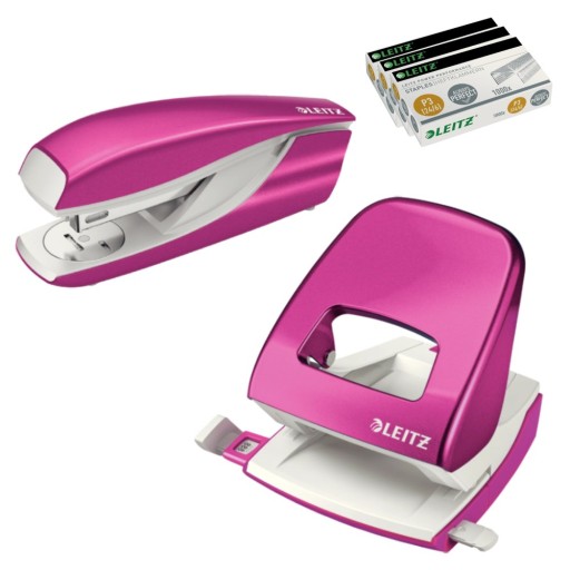 ZSZYWACZ METALOWY LEITZ WOW NEXXT RÓŻOWY + DZIURKACZ METALOWY LEITZ WOW NEXXT RÓŻOWY + 3x ZSZYWKI 24/6 LEITZ POWER PERFORMANCE P3 (1000SZT)
