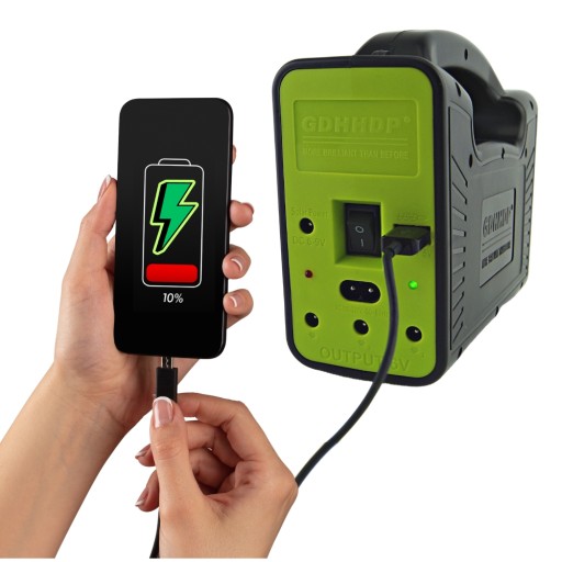 Wbudowana bateria 6V 4AH LEAD-ACID, dzięki której twój telefon naładujesz wielokrotnie. Jego duży akumulator pozwala również naładować wiele innych urządzeń w tym nawet te najbardziej wymagające. Jednocześnie możesz podłączyć do 3 telefonów oraz dowolne inne urządzenie z wejściem DC V8-9