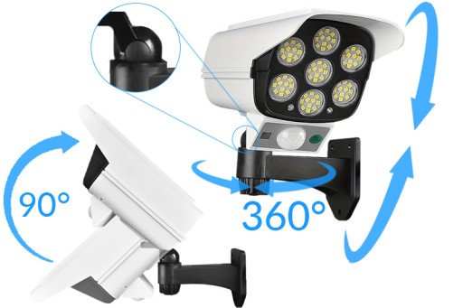 Imitacja kamery posiada uchwyt z głowicą kulową, który zapewnia pełną regulację kąta w zakresie 360°. Co pozwala dopasować ją idealnie do potrzeb i otoczenia. Zmieniać kąt ustawienia atrapy możesz w dowolnej chwili, nawet po jej zamontowaniu w wybranym miejscu.