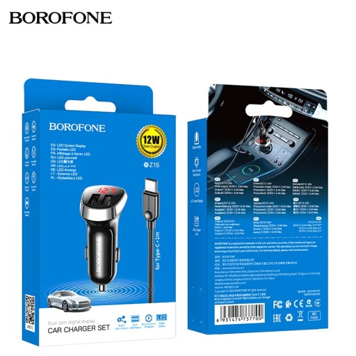 Borofone ładowarka samochodowa BZ15 Auspicious 2xUSB 2,4A z kablem USB na Typ C czarna