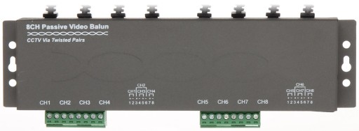 Urządzenie dopasowuje impedancję kabla koncentrycznego 75Ω do impedancji przewodu symetrycznego zapewniając przesył sygnału wizyjnego do 400m (skrętka komputerowa 5 kategorii) oraz eliminuje zakłócenia niesymetryczne