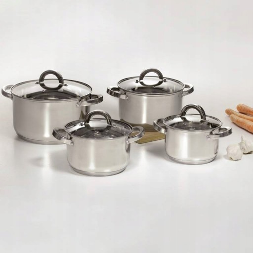 Komplet garnków Berry 13-elementowy marki Ambition. Garnki z pokrywkami ze szkła hartowanego i metalowymi rączkami. Wykonane są z wysokiej jakości stali nierdzewnej. Garnki w nowoczesnym i eleganckim kształcie z lustrzanym wykończeniem wewnątrz i na zewnątrz. Na wewnętrznych ściankach znajduje się skala ułatwiająca odmierzanie płynów. Garnki posiadają grube dno (0,5 mm aluminium + 1,5 mm żelazo + 0,5 mm aluminum) zapewniające szybkie i równomierne nagrzewanie naczynia oraz grube, zaokrąglone ścianki, typu Belly (0,5 mm). Uchwyty przymocowane do garnka za pomocą nitów. Komplet garnków Berry jest łatwy do utrzymania w czystości, przystosowany do mycia w zmywarkach, nadaje się do wszystkich rodzajów kuchenek, w tym indukcyjnych.