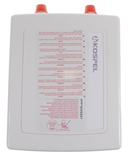 Elektryczny podgrzewacz idealny do umywalki lub zlewozmywaka z możliwością montażu w pozycji z króćcami w górę, lub w dół, nad lub pod umywalką.
