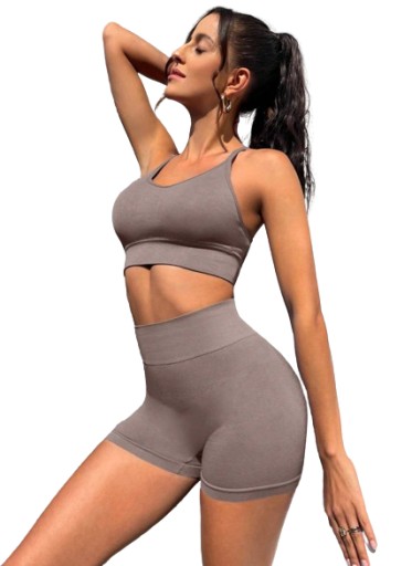 KOMPLET BEŻOWY SPORTOWY KRÓTKI GŁADKI