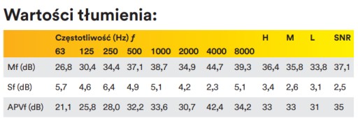 - Zmniejsza poziom hałasu do 35 dB, produkt testowany zgodnie z EN 352-2:2020
