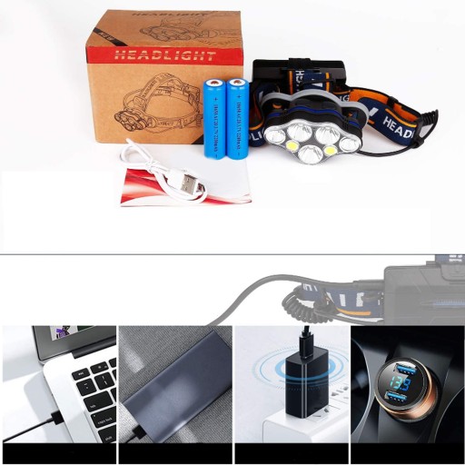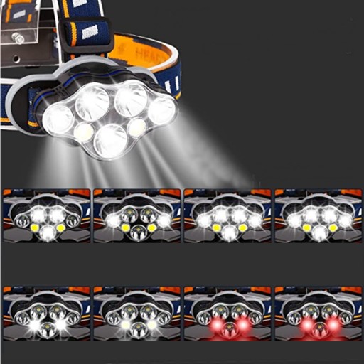 - Bardzo mocna latarka czołowa 7 LED
