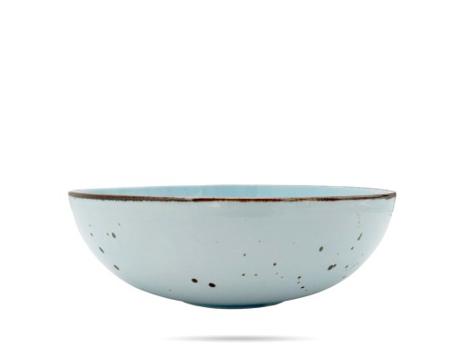 Salaterka o średnicy 23,5 cm z serii Cottage Sky polskiej firmy Porcelana Bogucice. Seria Cottage w kolorze Sky to linia jasnej, błękitnej porcelany z nieregularnymi, ciemnymi i nakrapianymi wzorami. Takie wzornictwo dodaje charakteru i niepowtarzalnego wyglądu. Jakość porcelany pozwala na bezpieczne mycie jej w zmywarkach, a także na stosowanie jej w kuchenkach mikrofalowych.