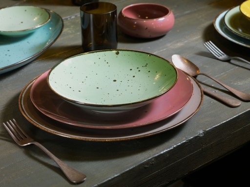 Duży półmisek świetnie sprawdzi się do serwowania i ekspozycji różnych dań. Talerz w w ciepłym, żółtym kolorze z ciemnymi, nakrapianymi wzorami. Sprawdzi się zarówno w domu, jak i w profesjonalnej gastronomii. Nakrapiana seria Cottage to talerze, półmiski, salaterki, kubki i filiżanki w różnych odcieniach.