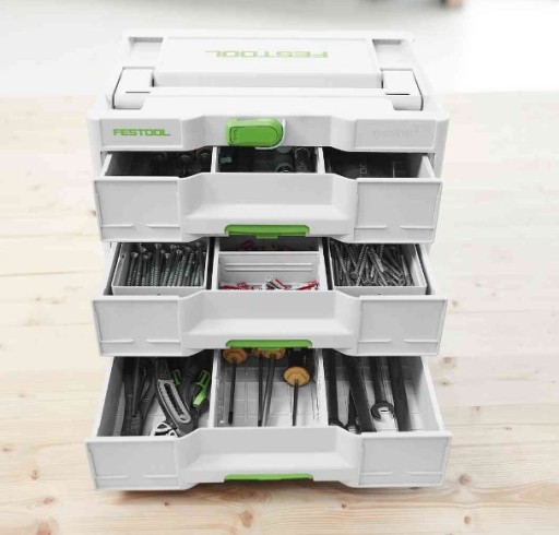 - Kompatybilność: pasuje do całego systemu Systainerów Festool – łatwe łączenie i transport.