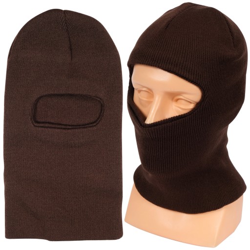 Kominiarka w kolorze ciemnobrązowym, wykonana z ciepłej i elastycznej dzianiny. Rozmiar uniwersalny, świetnie dopasowuje się do każdego kształtu głowy.