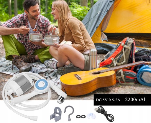 Przenośny prysznic turystyczny z elektryczną pompą wody idealny na wyjazdy pod namiot i kemping.Łatwy w użyciu, posiada wytrzymały hak, który pozwala zawiesić prysznic w dowolnym miejscu!