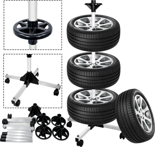Bardzo praktyczny stojak na opony, felgi lub kompletne koła. Stojak wyposażony jest w koła dzięki którym łatwo możemy transportować. W garażu zajmuje on bardzo mało miejsca.Stojak utrzyma koła do 225mm szerokości i wadze jednego koła do 25kg.