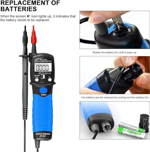 - Dokładność i wysoka precyzja - cyfrowy multimetr w kształcie długopisu, tester napięcia mierzy napięcie AC/DC: 6 V ~ 600 V, napięcie stałe: 600 mV ~ 600 V, tester rezystancji 1Ω ~ 60 MΩ, test diod i brzęczyk przejściowy.