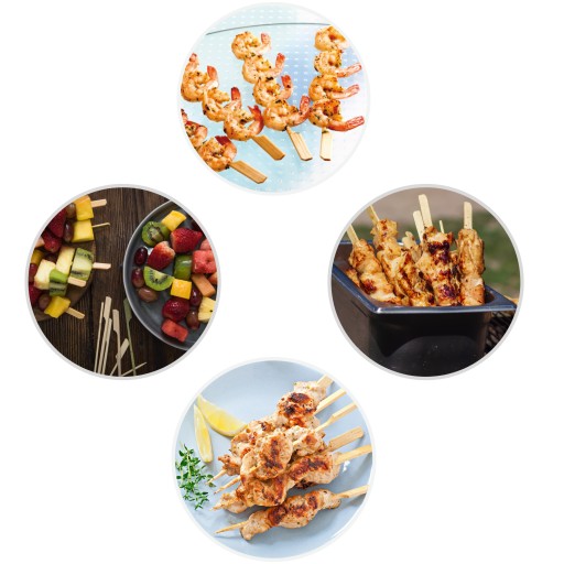 Patyczki są doskonałe do szaszłyków z mięsa i owoców lub do przykucia hamburgera