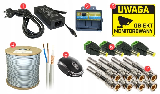 Wszystkie potrzebne wtyki i akcesoria do uruchomienia systemu monitoringu!