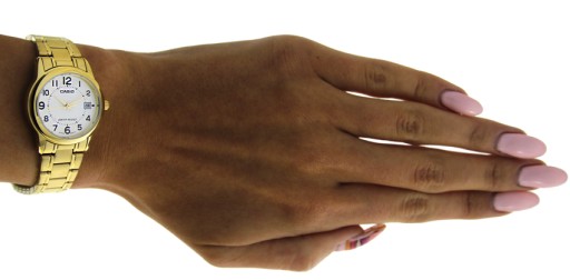 ZŁOTY ZEGAREK DAMSKI CASIO Z DATOWNIKIEM LTP-V002D-7BUDF + PUDEŁKO